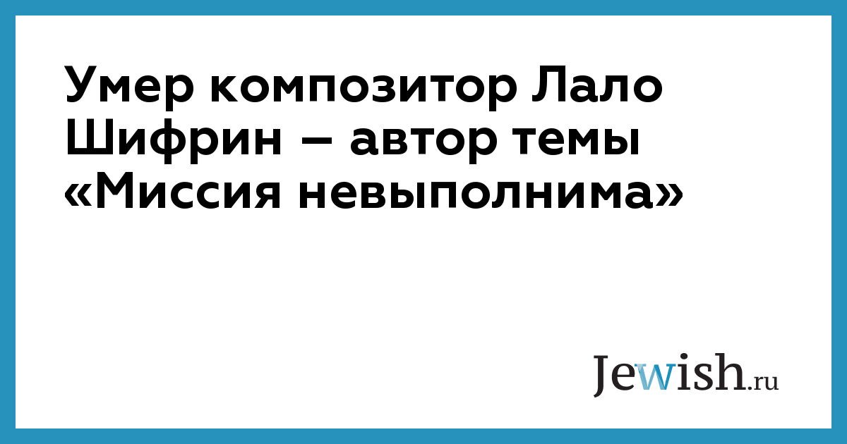 В Лос-Анджелесе в возрасте 93 лет от осложнений, вызванных пневмонией, скончался композитор Лало Шифрин, шестикратный номинант на премию «Оскар», автор культового саундтрека для фильма «Миссия невыполнима». Об этом сообщает The Hollywood Reporter со ссылкой на сына композитора.