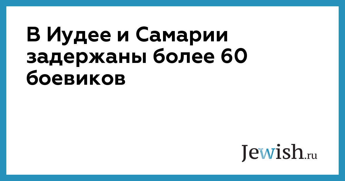 В Иудее и Самарии задержаны более 60 боевиков