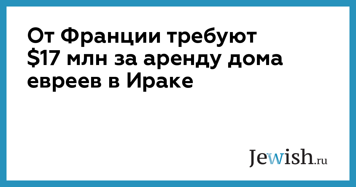 Потомок иракской еврейской семьи подал иск против правительства Франции на сумму более $17 млн за десятилетия неуплаты аренды дома в Багдаде, требуя также возмещения морального ущерба на $9 млн. Здание, в котором с 1960-х годов расположено французского посольства, как утверждается в иске является собственностью семью, сообщает издание The Jerusalem Post.