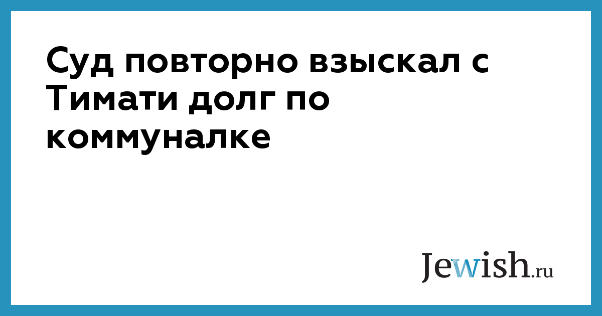 Столичный мировой суд повторно взыскал долг по коммунальным платежам с рэпера и бизнесмена Тимати. Как сообщает РИА «Новости», иск был подан Фондом капитального ремонта многоквартирных домов Москвы.