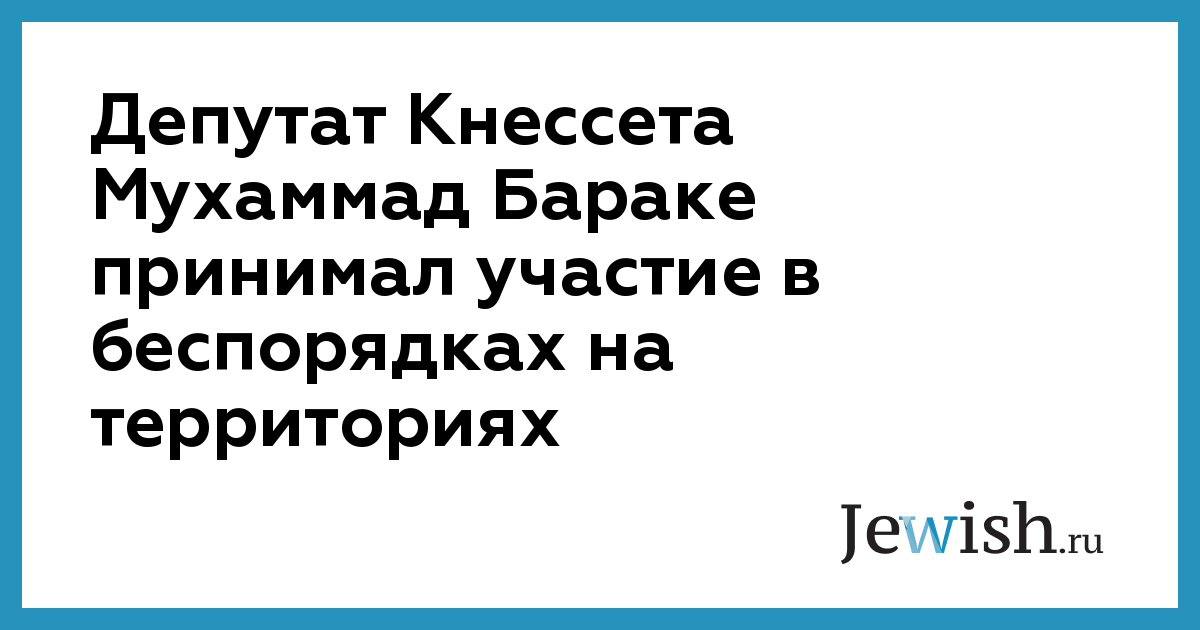 Депутат Кнессета Мухаммад Бараке принимал участие в беспорядках на территориях