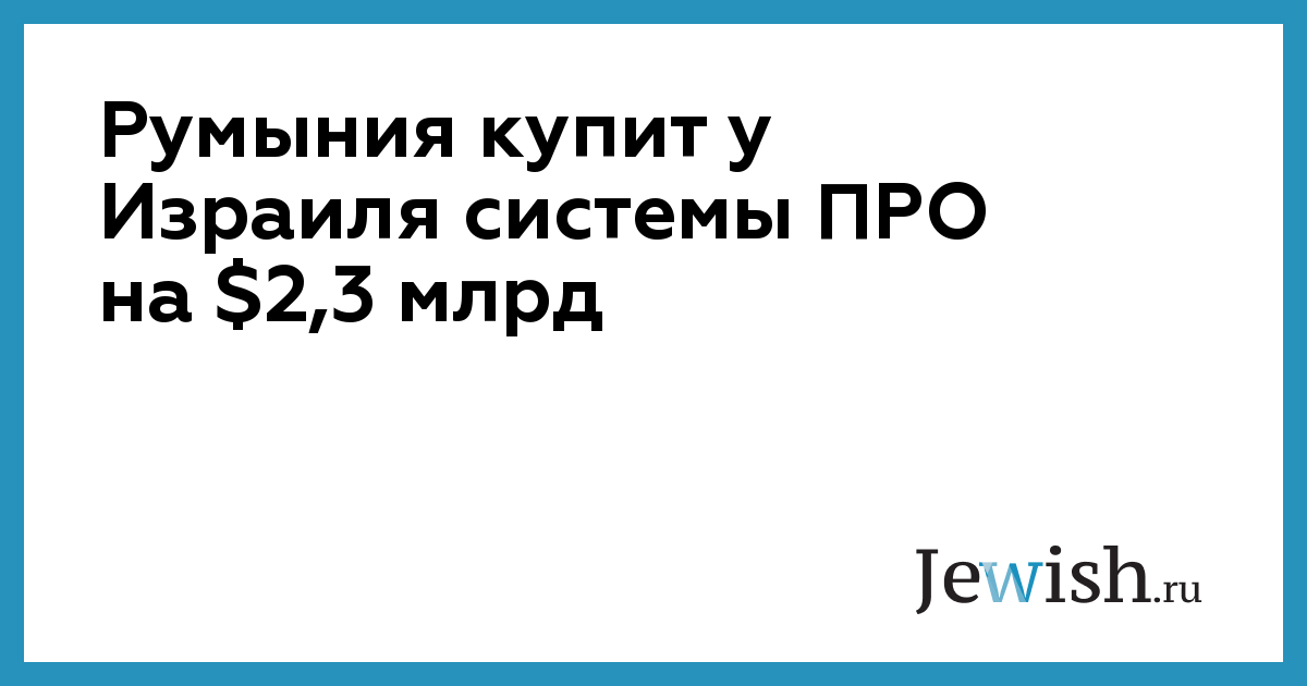 Это соглашение включает подписание сторонами трех контрактов, по которым Румыния сможет приобрести шесть систем ПРО. Сумма сделки, предусматривающей также помощь израильской стороны в обучении военных использованию систем, поставки боеприпасов и материально-техническое обеспечение, составит $2,3 млрд.