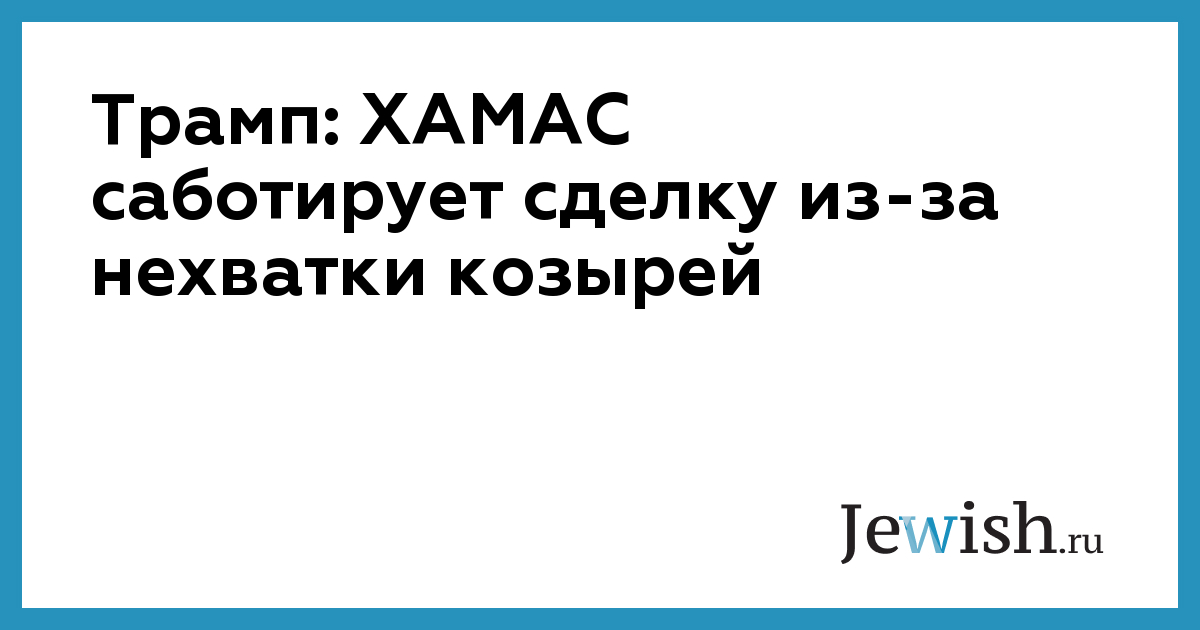 Президент США Дональд Трамп считает, что террористическая группировка ХАМАС намеренно оттягивает сделку о прекращении огня и освобождении заложников, поскольку если заключить ее сейчас, то у террористов попросту «не останется козырей».
