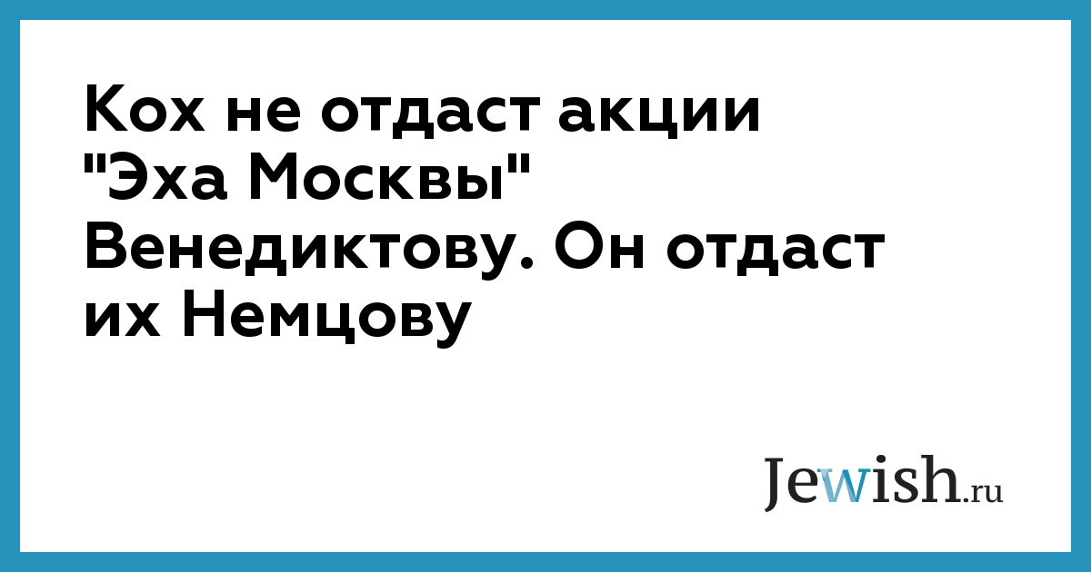Кох не отдаст акции "Эха Москвы" Венедиктову. Он отдаст их Немцову