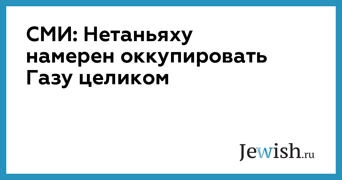 СМИ: Нетаньяху намерен оккупировать Газу целиком