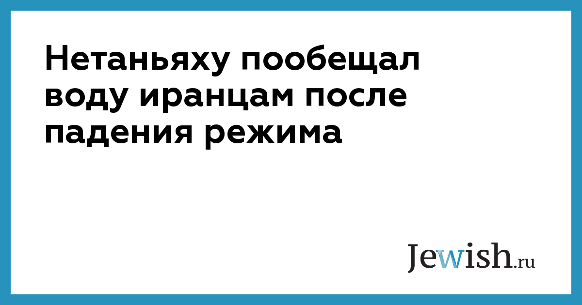 Премьер-министр Израиля Биньямин Нетаньяху опубликовал 12 августа очередное видеообращение к иранскому народу, в котором пообещал предоставить стране, испытывающей засуху, технологии в области водоснабжения. Произойдет это, по словам премьера, сразу после падения действующего в Иране режима, сообщает The Times of Israel.