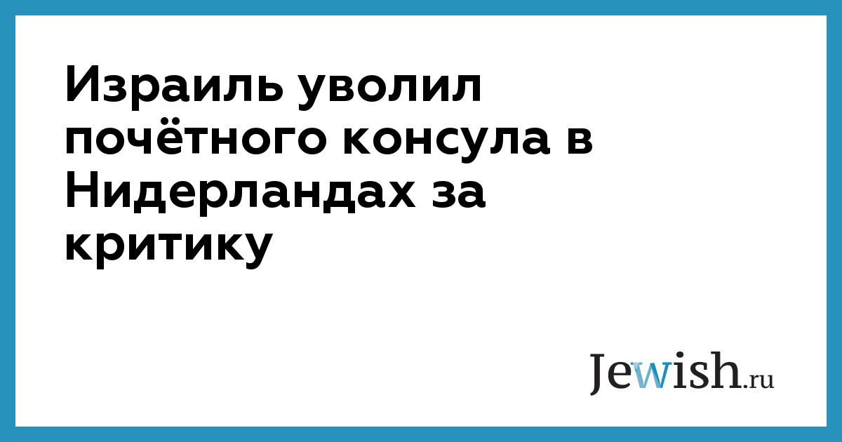 Израиль уволил почётного консула в Нидерландах за критику