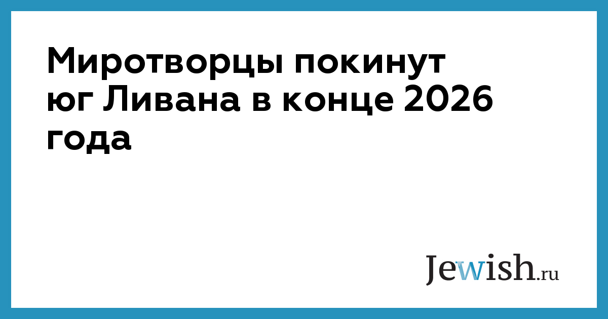 Миротворческая миссия ООН на юге Ливана (ВСООНЛ), осуществляющая патрулирование так называемой «голубой линии» разграничения между Израилем и Ливаном, будет завершена в конце 2026 года. Такое решение было принято Советом Безопасности ООН в Нью-Йорке, единогласно проголосовавшим за продление последнего срока мандата миротворцев до 31 декабря 2026 года.