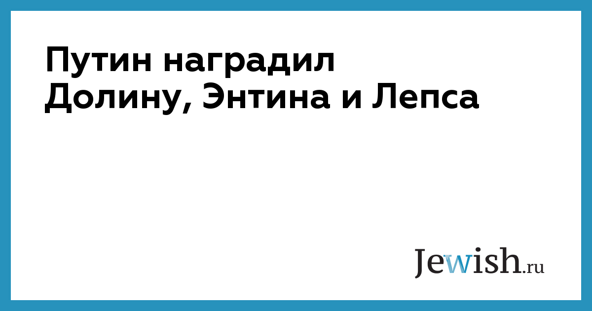 Президент России Владимир Путин наградил певицу Ларису Долину, поэта Юрия Энтина, исполнителя Григория Лепса, а также ряд других культурных и общественных деятелей государственными орденами и медалями, соответствующий указ размещен на сайте официально опубликованных правовых актов. Певица Лариса Долина награждена орденом «За заслуги перед Отечеством» IV степени, певец Григорий Лепс награжден орденом Дружбы, а поэт-песенник Юрий Энтин – орденом «За заслуги в культуре и искусстве».