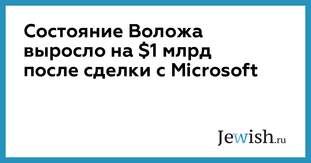 Состояние Воложа выросло на $1 млрд после сделки с Microsoft