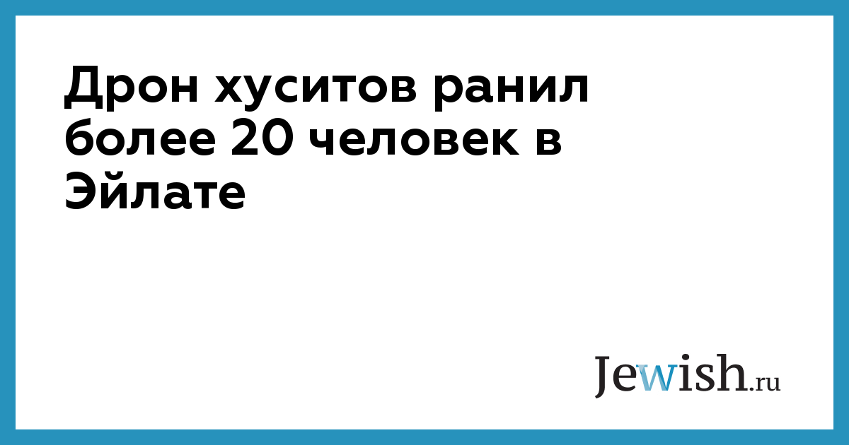 Более 20 человек пострадали в Эйлате в результате взрыва беспилотника, запущенного йеменской террористической группировкой хуситов «Ансар Аллах» из Йемена. Двое пострадавших находятся в тяжелом состоянии в отделении реанимации и интенсивной терапии, 19 человек получили легкие ранения, сообщает The Times of Israel. На видеозаписи с места происшествия видно, что беспилотный летательный аппарат потерпел крушение в непосредственной близости от отеля.