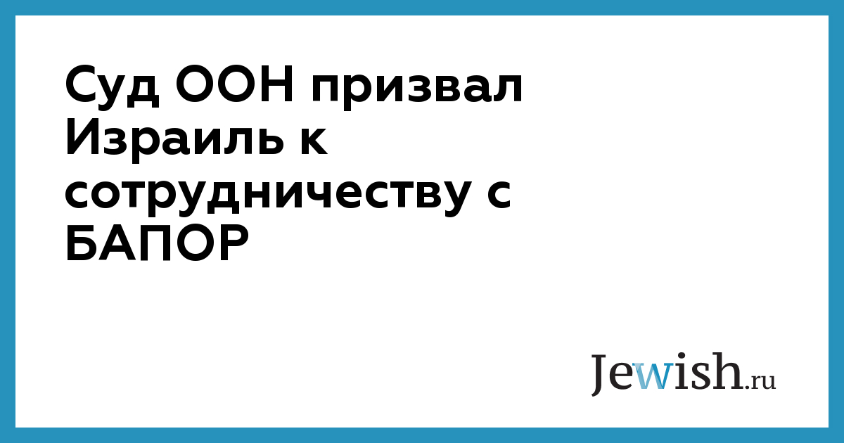 Суд ООН призвал Израиль к сотрудничеству с БАПОР