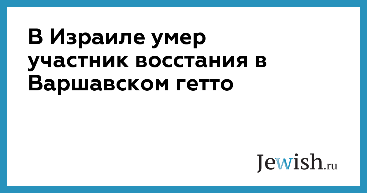 В Израиле умер участник восстания в Варшавском гетто