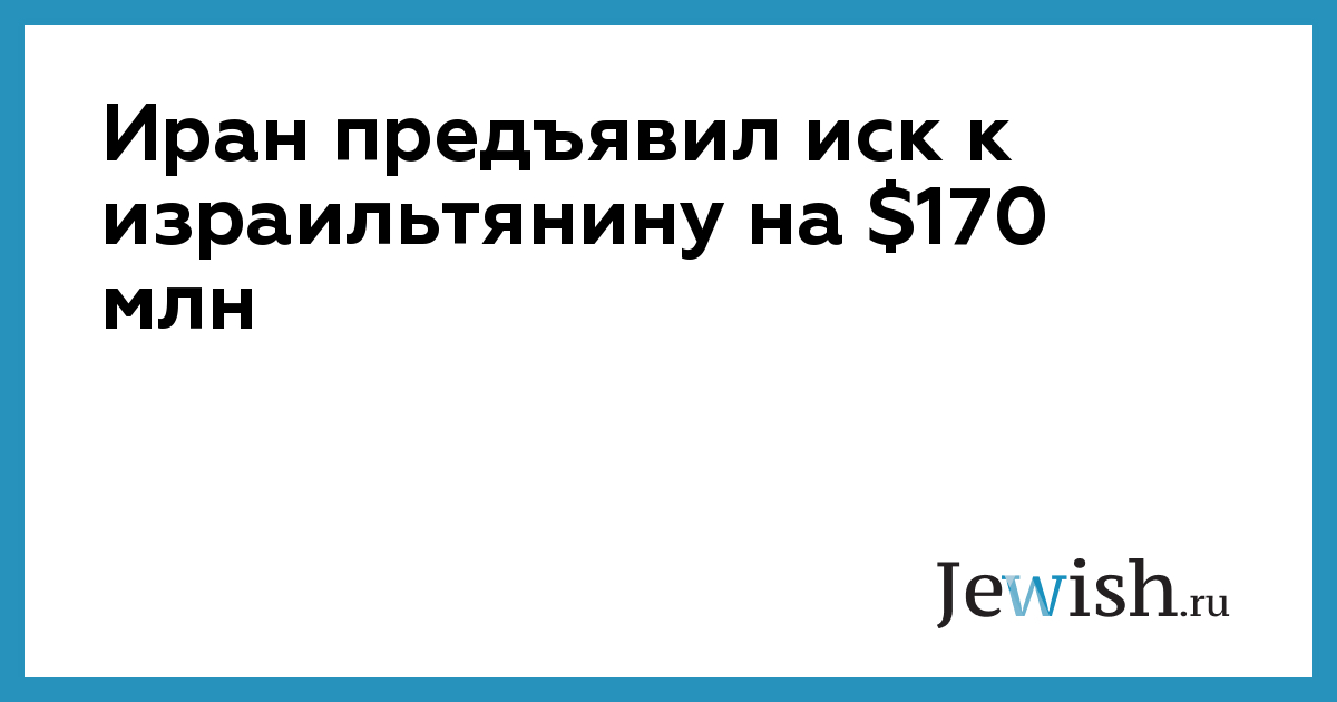 Правоохранительные органы Ирана подали судебный иск о взыскании $170 млн с израильского бизнесмена в виде штрафа «за финансирование терроризма». Об этом сообщает издание The Times of Israel со ссылкой на заявление представителя судебной системы Ирана Асгара Джахангира. Подробности иска пока не известны, но связан он с захваченным Ираном в апреле прошлого года судном MSC Aries, а сумма штрафа совпадает с оценкой стоимости этого судна, проведенной иранскими властями.