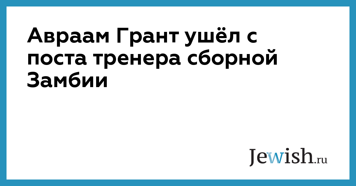После почти трехлетнего пребывания на посту главного тренера национальной сборной Замбии по футболу Авраам Грант принял решение покинуть свой пост. О досрочном расторжении контракта объявлено всего за два месяца до начала Кубка африканских наций, отмечает The Jerusalem Post.