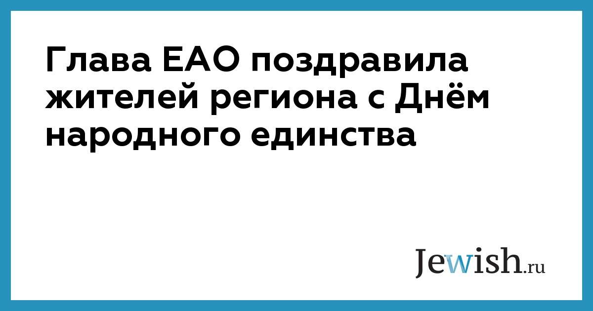 Губернатор Еврейской автономной области (ЕАО) Мария Костюк обратилась к жителям области с поздравлением в честь Дня народного единства. «Дорогие земляки! Сердечно поздравляю вас с Днем народного единства! В этот праздничный день желаю всем вам крепкого здоровья, благополучия, неиссякаемой энергии для многих добрых дел во имя нашей родной области и всей России!» – написала глава региона в публикации в своем Telegram-канале.