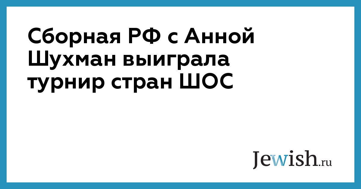 Анна Шухман в составе сборной России стала победителем командного турнира по шахматам среди стран Шанхайской организации сотрудничества, который проходил в китайском Харбине по круговой системе с участием 11 команд.