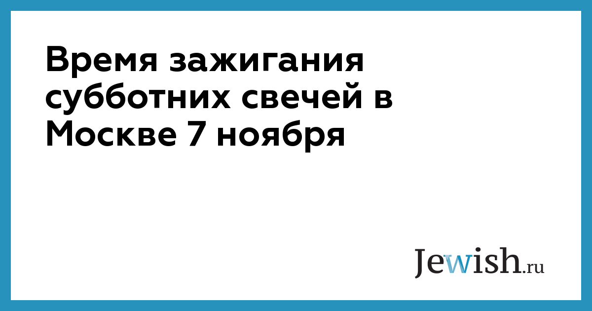 Время зажигания субботних свечей в Москве 7 ноября