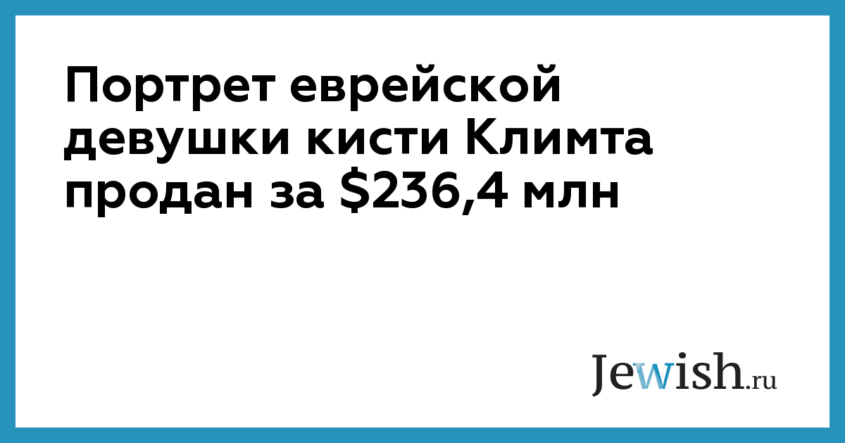Портрет еврейской девушки Элизабет Ледерер, написанный австрийским художником Густавом Климтом, установил новый рекорд на аукционе Sotheby's в Нью-Йорке. Он был продан за рекордную сумму в $236,4 млн став самым дорогим произведением современного искусства и вторым по стоимости произведением, когда-либо проданным на аукционе, сообщает Bloomberg.