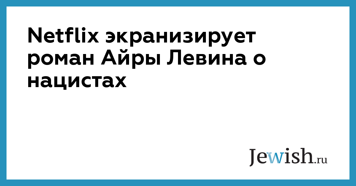 Netflix экранизирует роман Айры Левина о нацистах