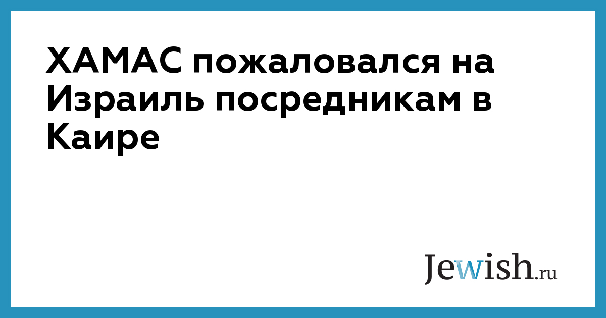 ХАМАС пожаловался на Израиль посредникам в Каире