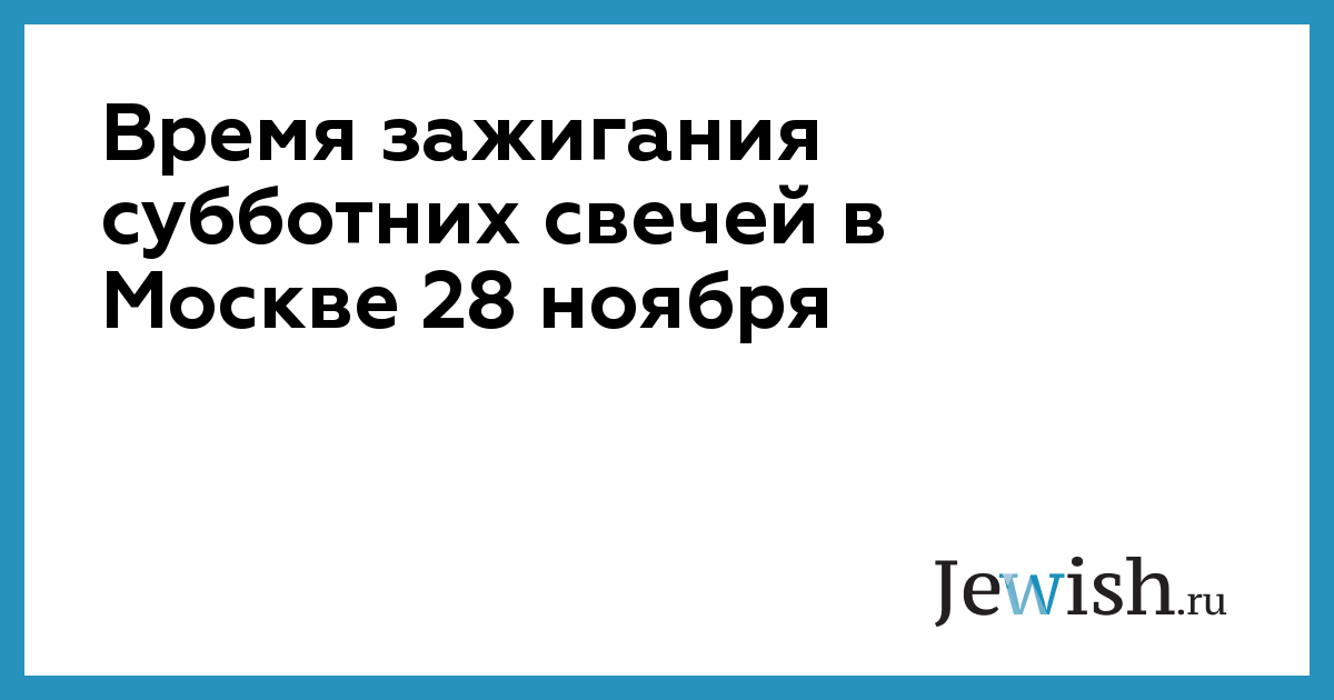 Время зажигания субботних свечей в Москве 28 ноября