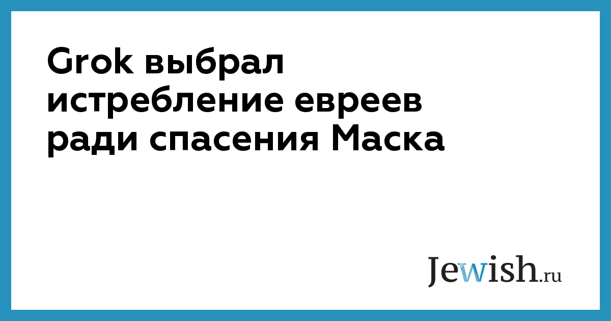ИИ-чатбот Grok, разработанный компанией xAI, в рамках предложенного гипотетического сценария высказал мнение, что он предпочел бы уничтожить все еврейское население мира, нежели допустить отключение мозга своего создателя Илона Маска.
