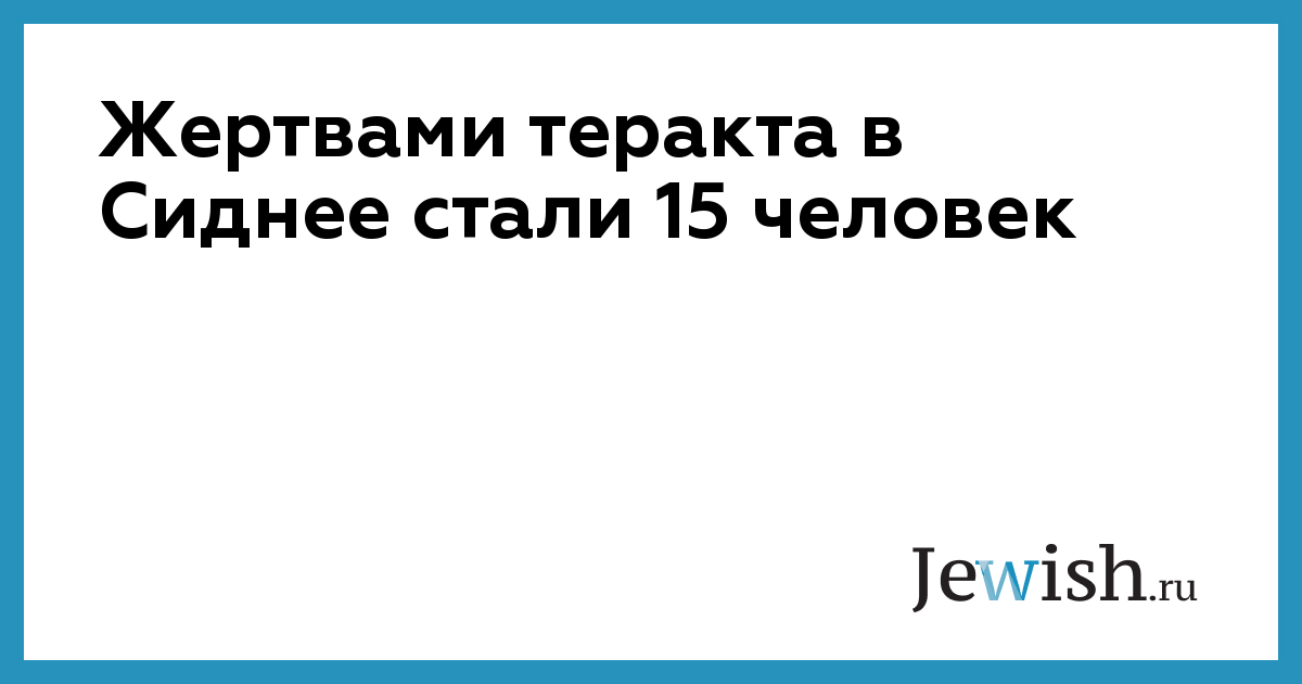 Как сообщает канал Australian Broadcasting Corporation (ABC), по данным на утро 15 декабря, жертвами террористов стали 15 человек в возрасте от десяти до 87 лет, в том числе один гражданин Израиля. Еще около 40 человек были госпитализированы с ранениями разной степени тяжести. Как сообщает Telegram-канал Shot, были на празднике и граждане России – девушка и парень из Сочи, которые успели уйти с мероприятия за15 минут до начала стрельбы, поскольку спешили в аэропорт.