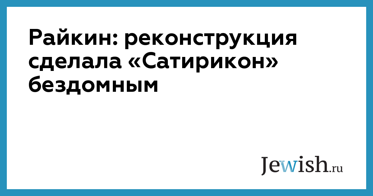 Многолетняя реконструкция здания театра «Сатирикон», изначально планировавшаяся как краткосрочный ремонт, превратила коллектив в «бездомный» театр. Об этом в интервью изданию «Коммерсантъ» сообщил художественный руководитель театра Константин Райкин.