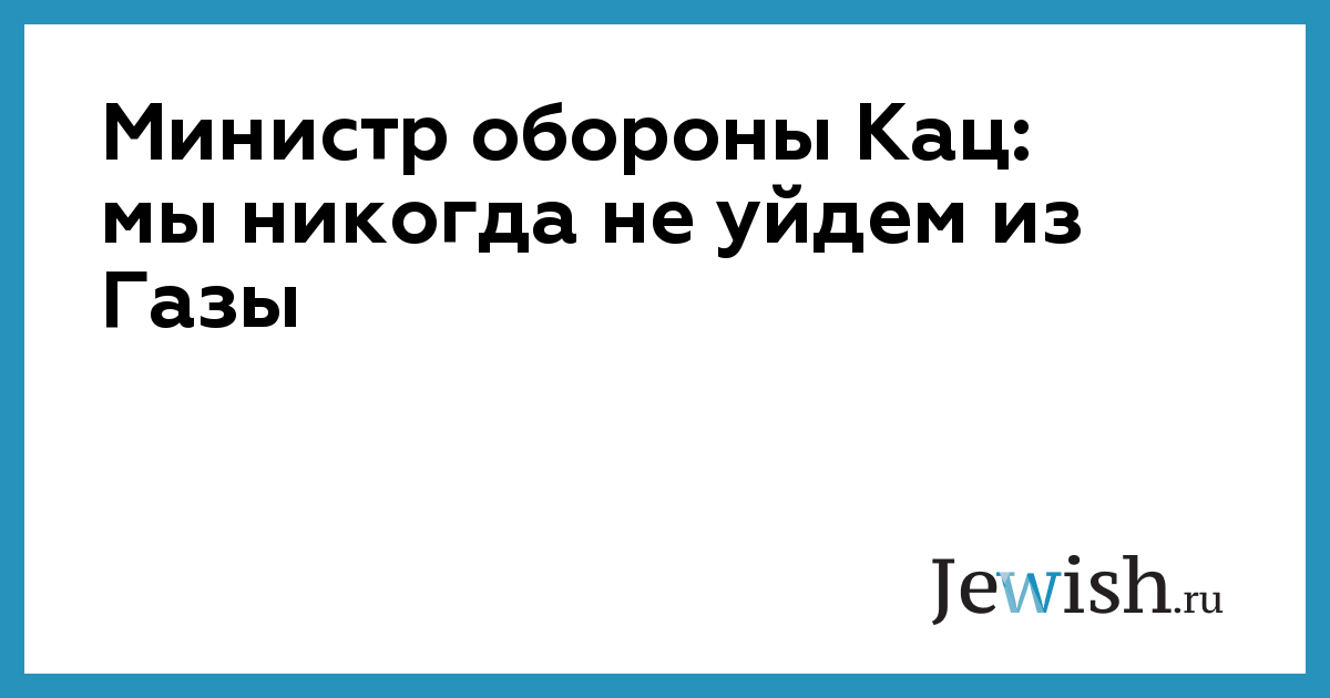 Министр обороны Кац: мы никогда не уйдем из Газы