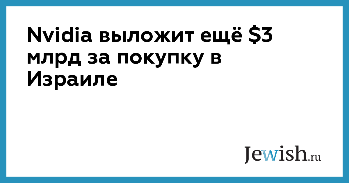 Nvidia выложит ещё $3 млрд за покупку в Израиле