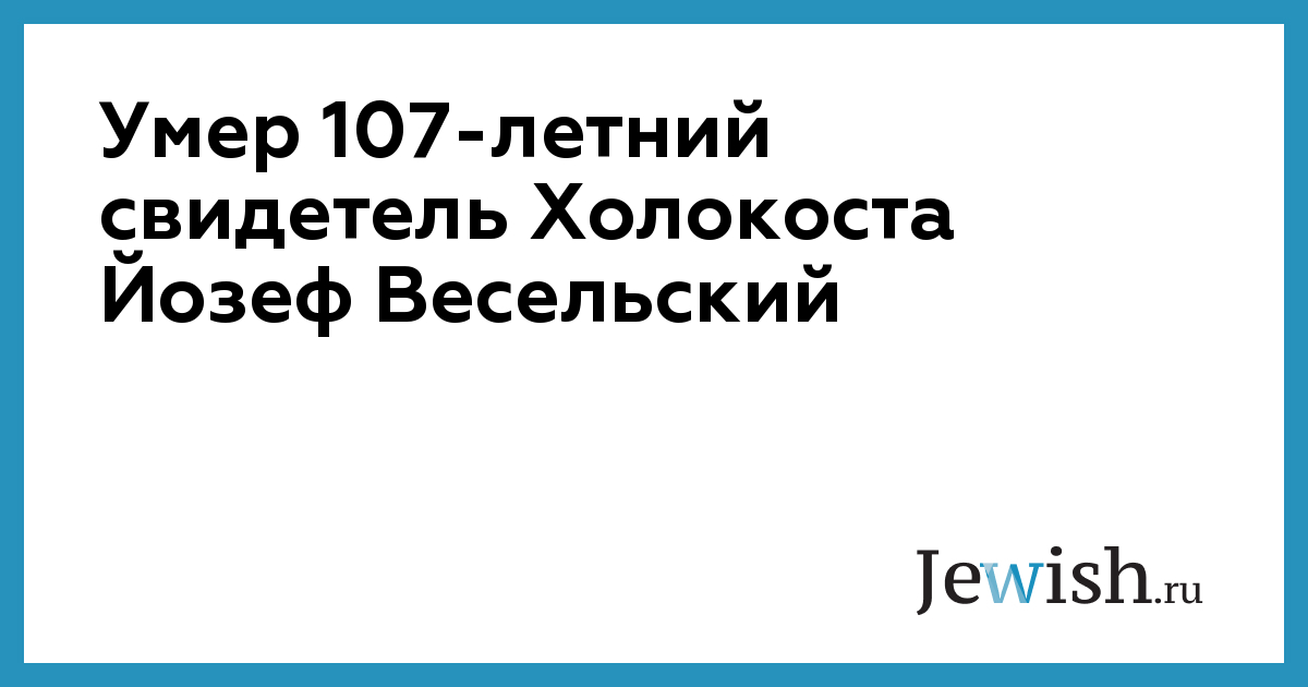 Умер 107-летний свидетель Холокоста Йозеф Весельский