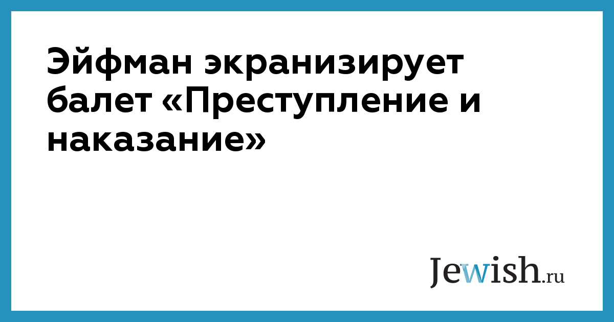 Балетмейстер Борис Эйфман снимет киноверсию своего балета «Преступление и наказание» по мотивам романа Федора Достоевского. Как сообщает ТАСС, съемочный период завершится 24 января.