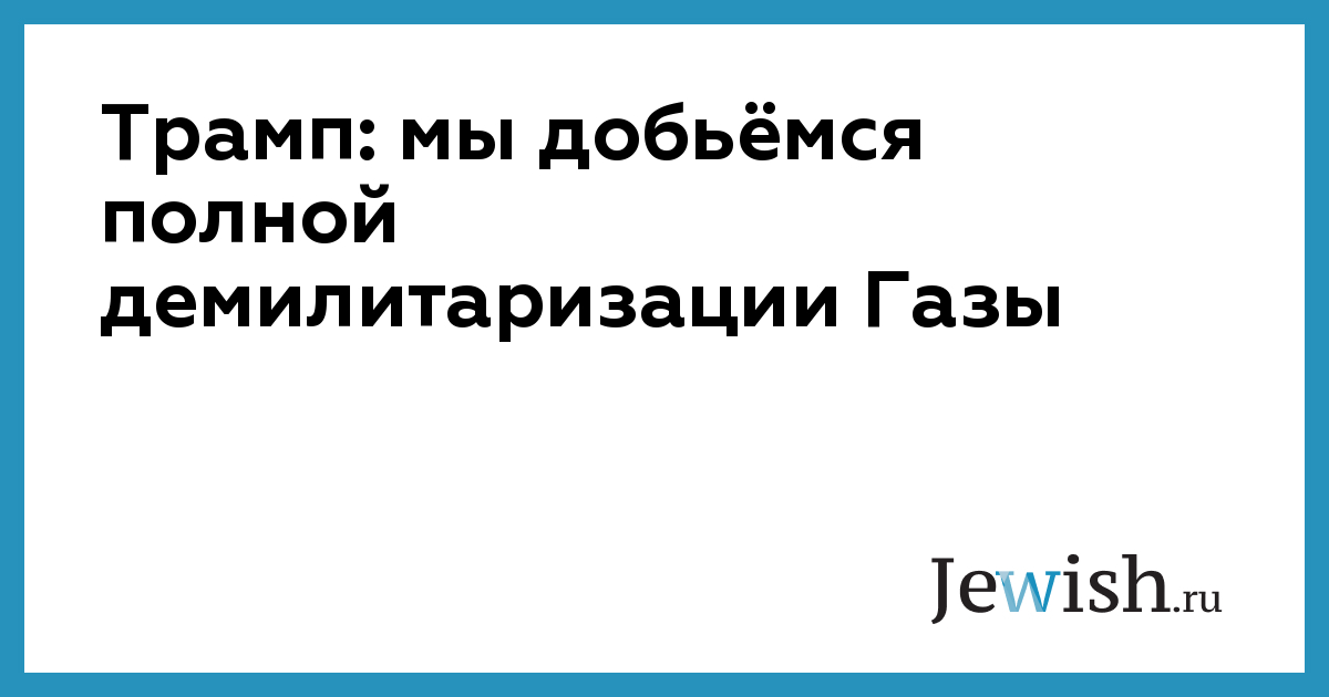 Трамп: мы добьёмся полной демилитаризации Газы