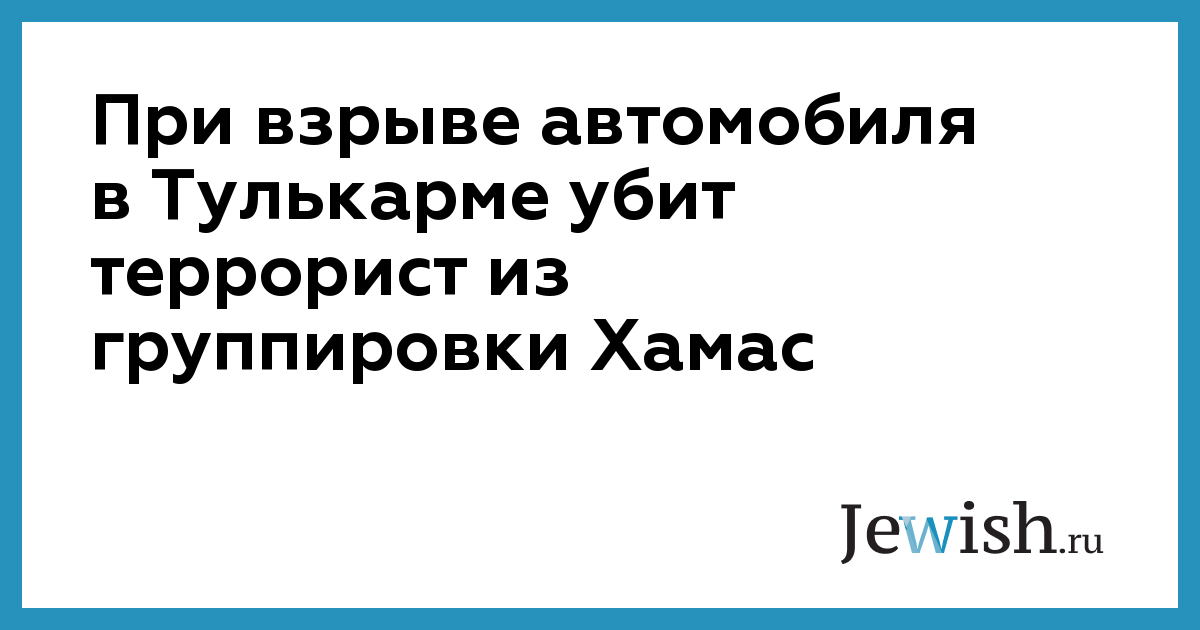 При взрыве автомобиля в Тулькарме убит террорист из группировки Хамас