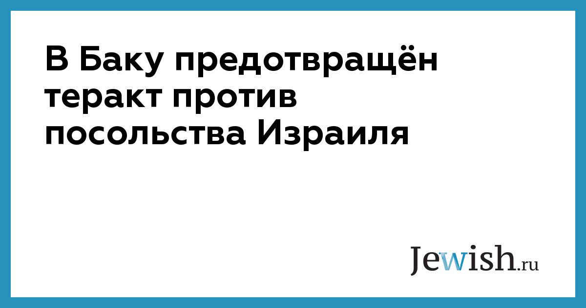 Теракт, предотвращенный в столице Азербайджана, планировался злоумышленниками против посольства Израиля. «Трое арестованных готовили теракт против посольства Израиля в Азербайджане», – цитирует РИА «Новости» источник в правоохранительных органах республики.
