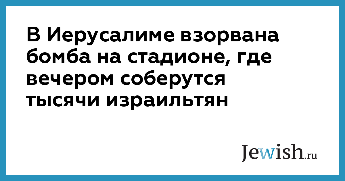 В Иерусалиме взорвана бомба на стадионе, где вечером соберутся тысячи израильтян