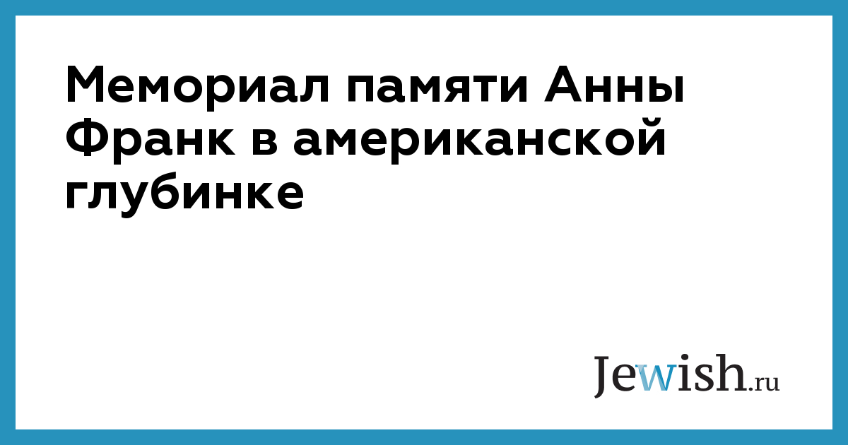 Мемориал памяти Анны Франк в американской глубинке