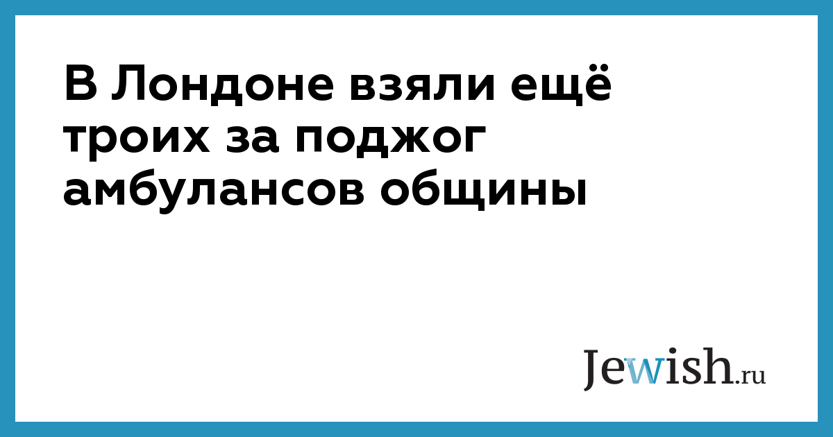 Британская полиция арестовала еще троих подозреваемых по делу о поджоге автомобилей скорой помощи еврейской общины, совершенного в ночь на 23 марта в районе Голдерс-Грин. Об этом сообщает The Times of Israel со ссылкой на заявление Скотленд-Ярда. В заявлении столичной полиции подчеркивается, что задержанные мужчины в возрасте 17, 19 и 20 лет подозреваются в «сговоре с целью совершения поджога с намерением создать угрозу жизни».