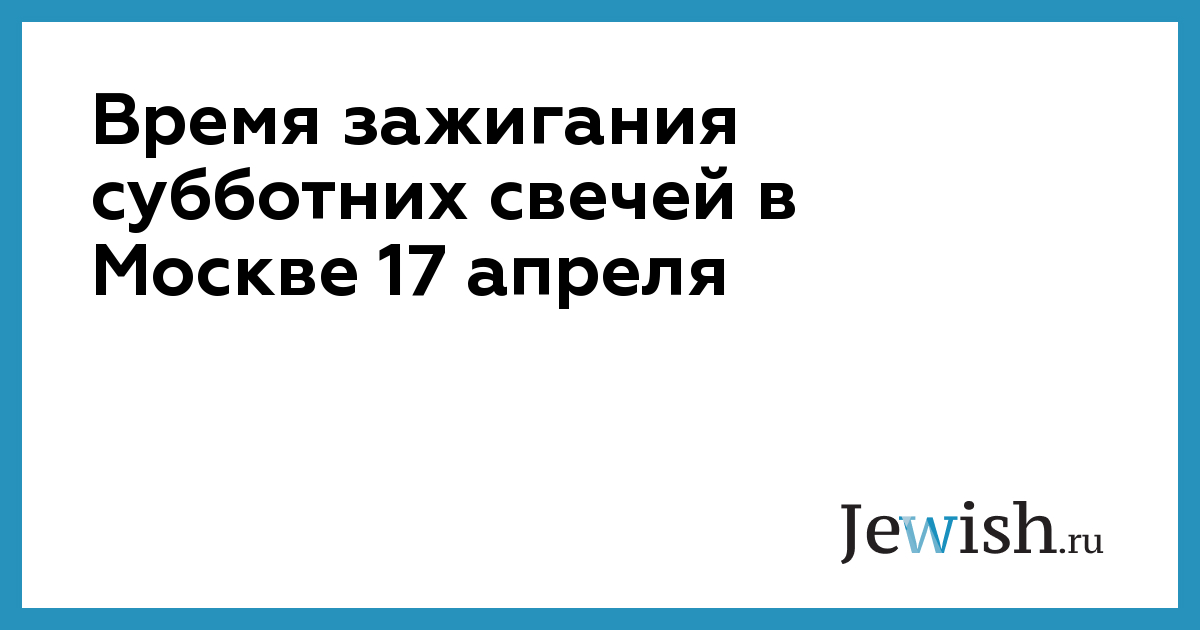 Время зажигания субботних свечей в Москве 17 апреля