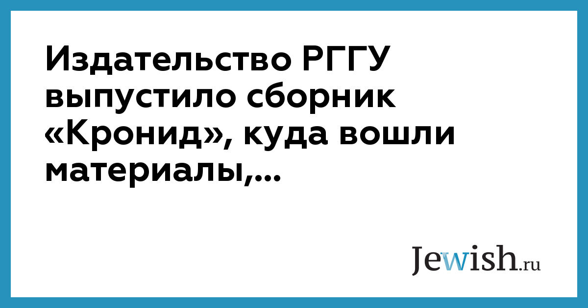 Издательство РГГУ выпустило сборник «Кронид», куда вошли материалы,...