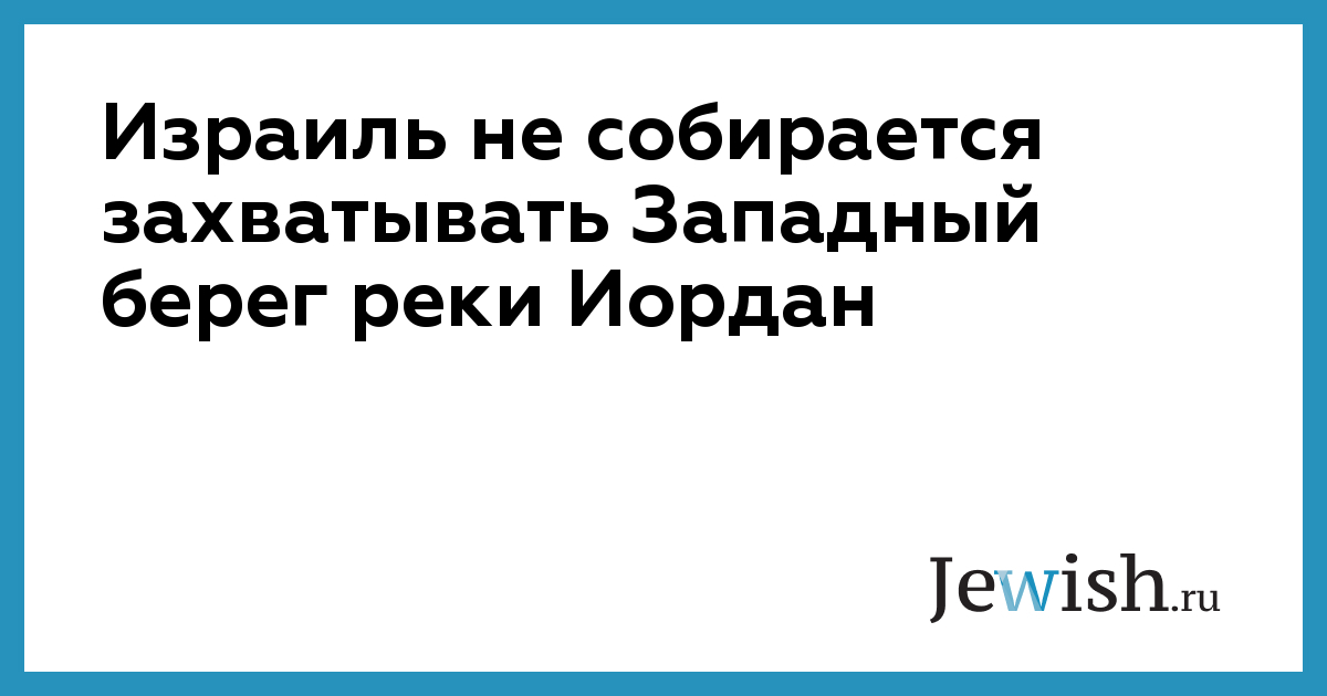 Израиль не собирается захватывать Западный берег реки Иордан