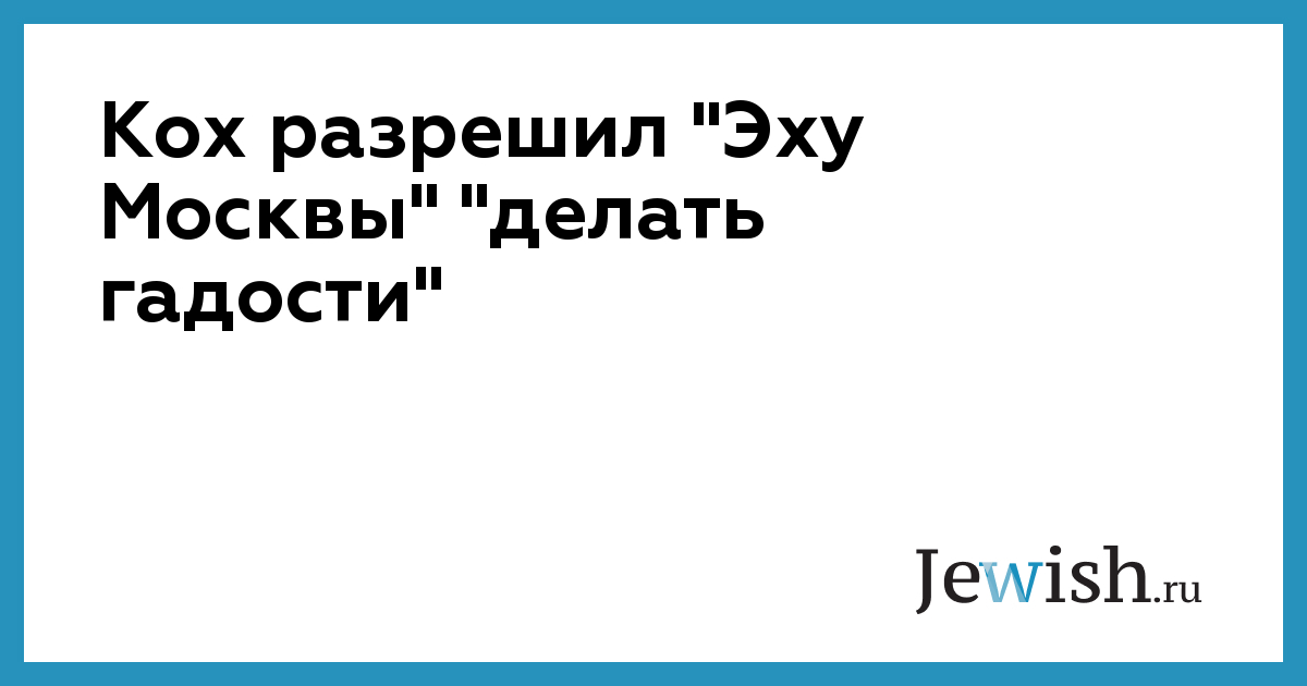 Кох подчеркнул, что у него "нет желания ликвидировать такое интересное явление нашей общественной жизни", как "Эхо Москвы".