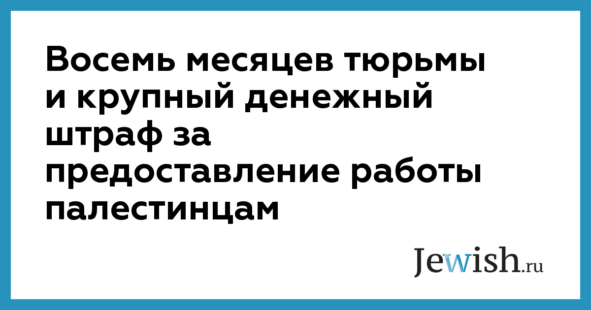 Восемь месяцев тюрьмы и крупный денежный штраф за предоставление работы палестинцам