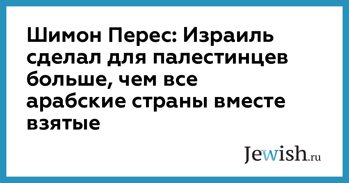 Шимон Перес: Израиль сделал для палестинцев больше, чем все арабские страны вместе взятые