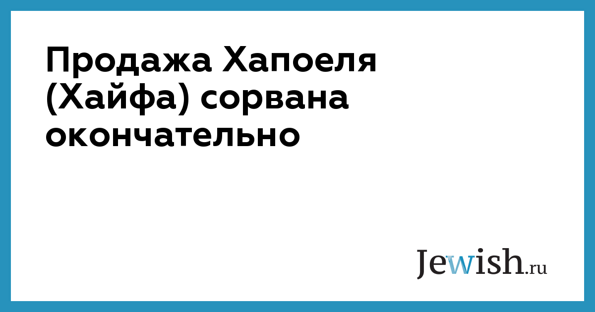 Продажа Хапоеля (Хайфа) сорвана окончательно
