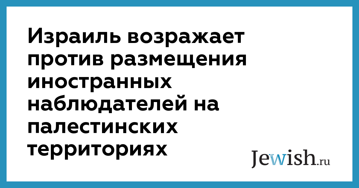 Израиль возражает против размещения иностранных наблюдателей на палестинских территориях