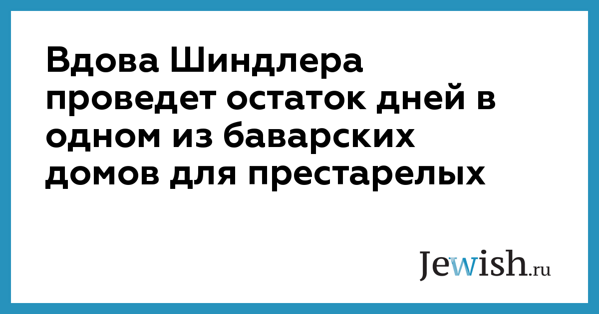 Вдова Шиндлера проведет остаток дней в одном из баварских домов для престарелых
