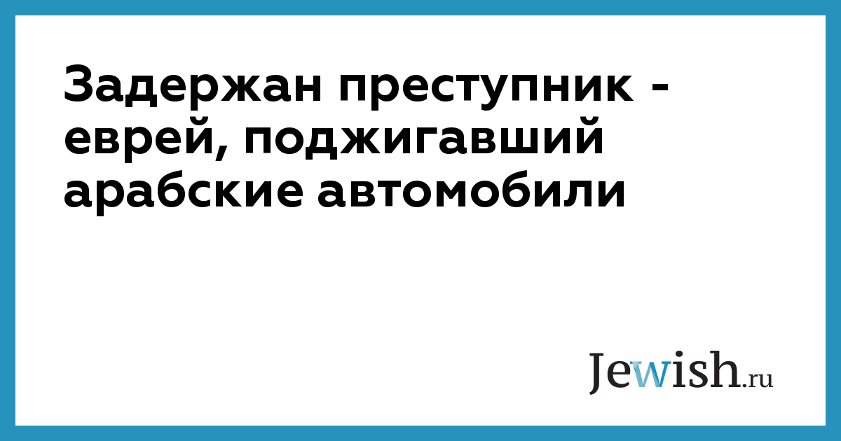 Задержан преступник — еврей, поджигавший арабские автомобили