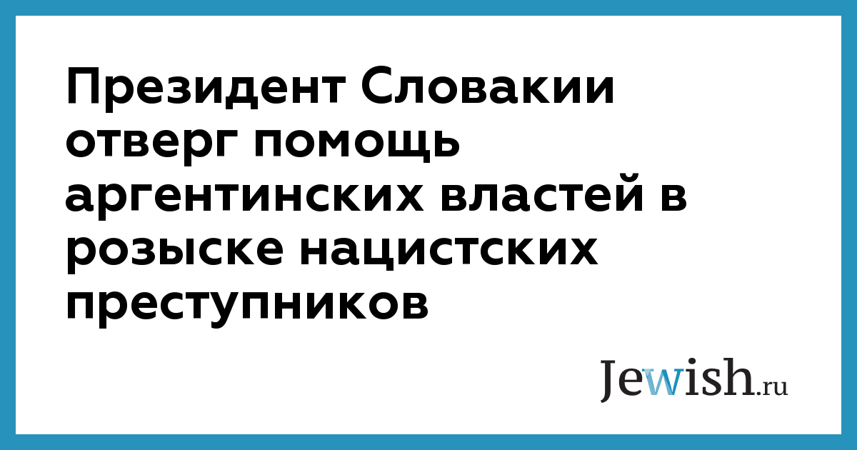 Президент Словакии отверг помощь аргентинских властей в розыске нацистских преступников